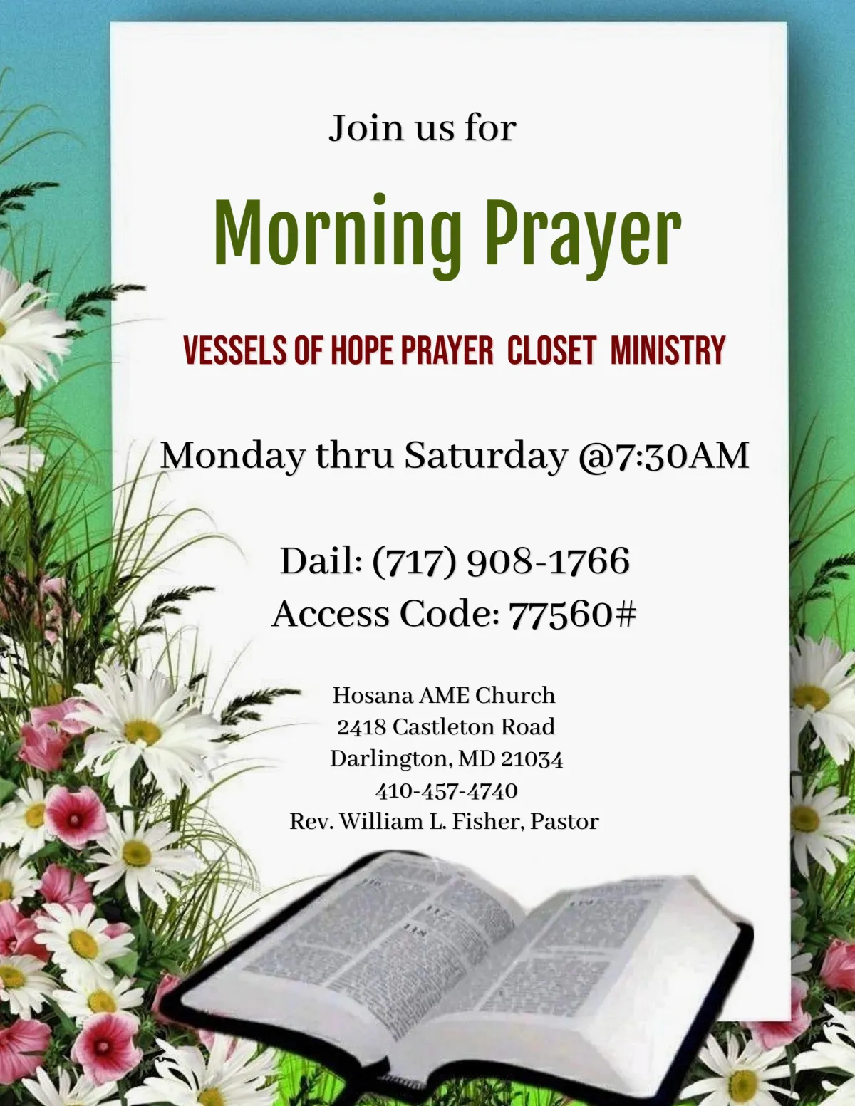 Call the Church @ (410) 457-4740 to Register for Bible Study and receive